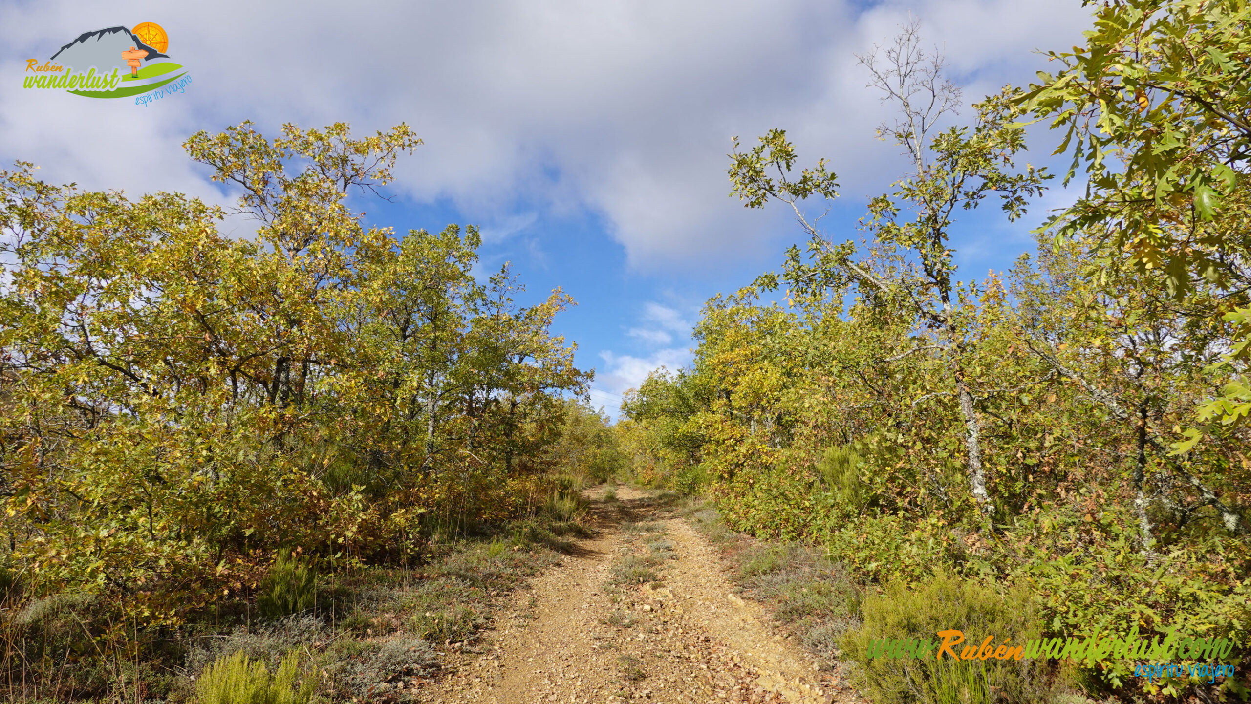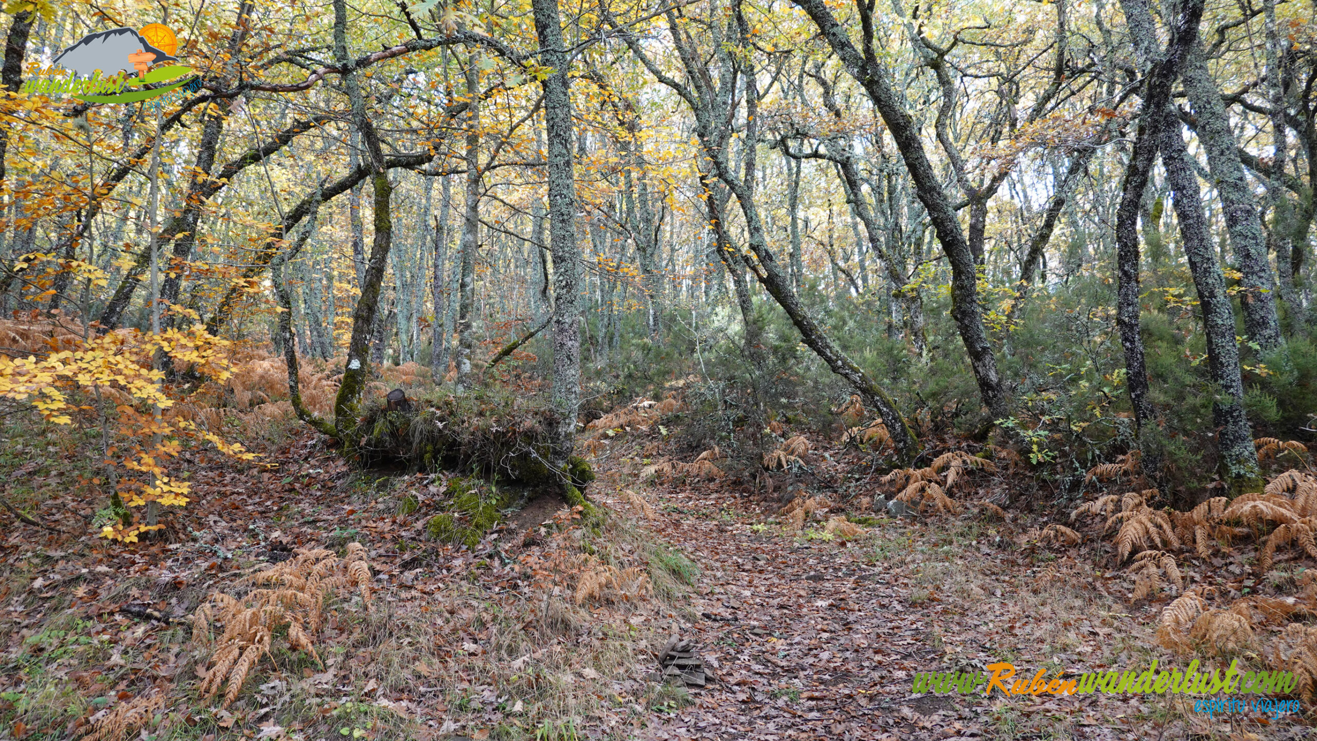 Seguimos la ruta bajando del Alto de Monterrey sin variar el rumbo, adentrándonos en un precioso robledal. Aquí conectaremos con el camino más transitado desde Nocedo de Gordón. De nuevo sobre la ruta más típica, nos desviamos hacia la derecha un par de veces, con el fin de continuar subiendo.