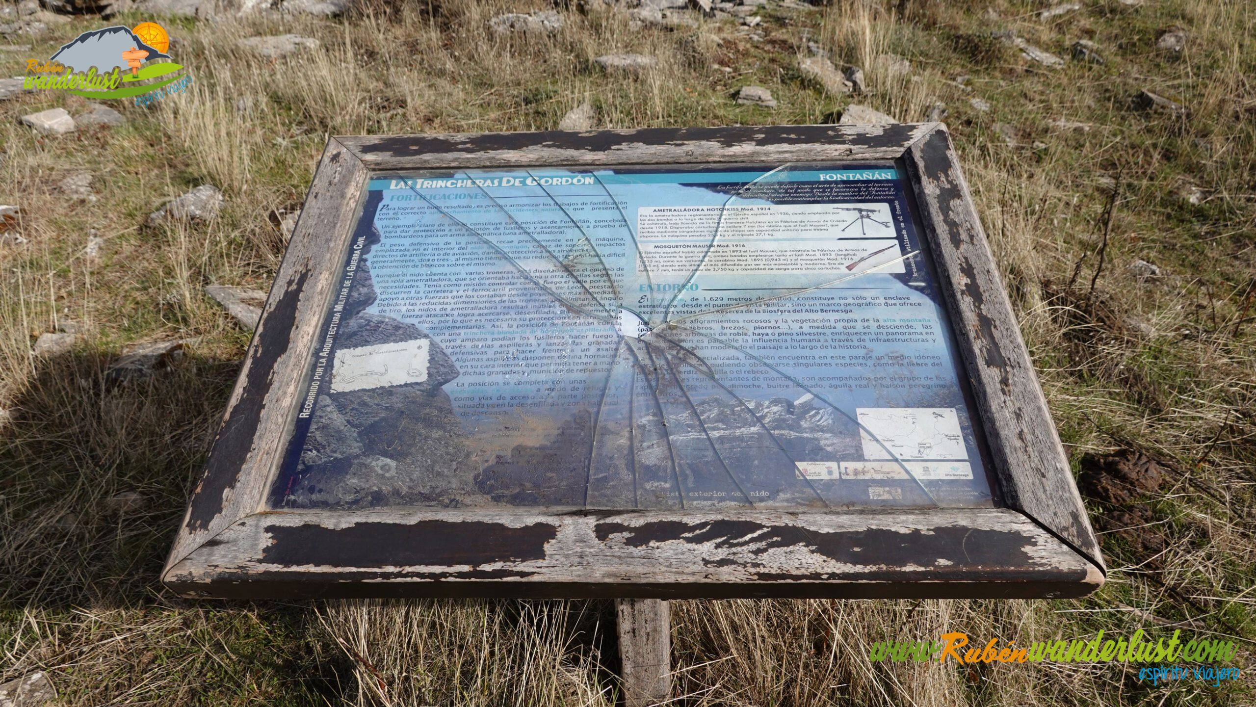 Tras la cumbre, aprovechamos unos minutos más para contemplar todo el entorno de la cumbre del Pico Fontañán, donde encontramos numerosas trincheras, túneles y casamatas. Un cartel informativo de dudoso estado nos proporciona algo de información!