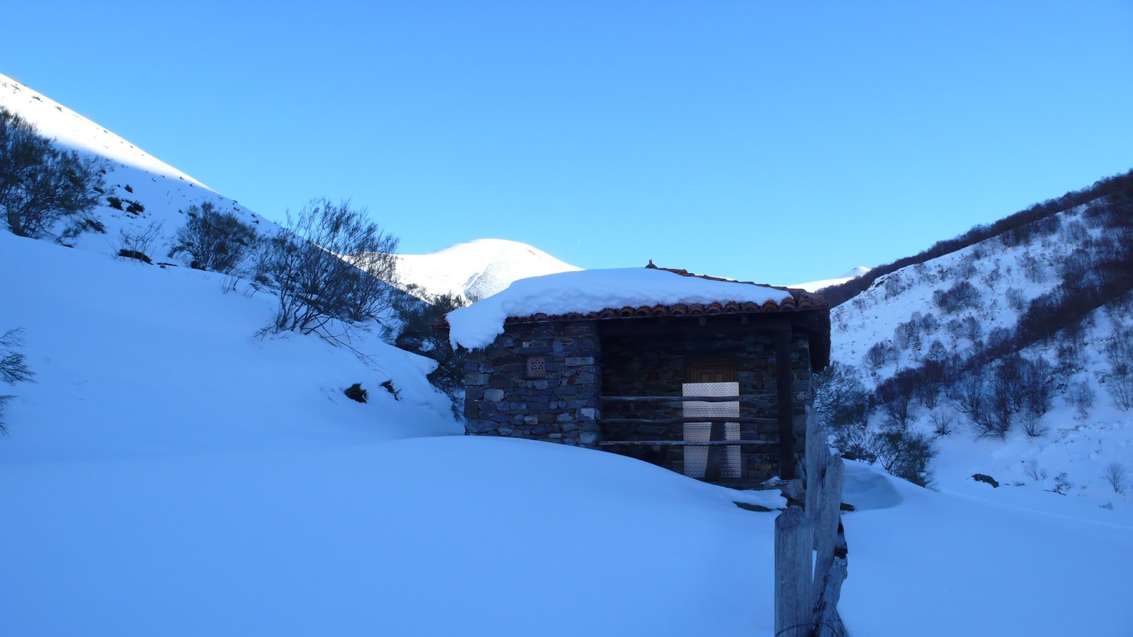 Pronto llegamos a un refugio, chapado y protegido contra la nieve que se acumula cada invierno en esta zona. Seguimos disfrutando de la gran cantidad de nieve y de la bonita travesía a lo largo de la Vía Carisa.
