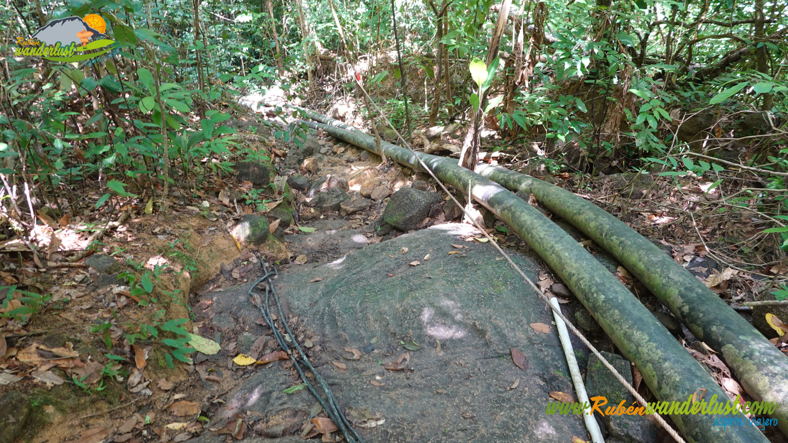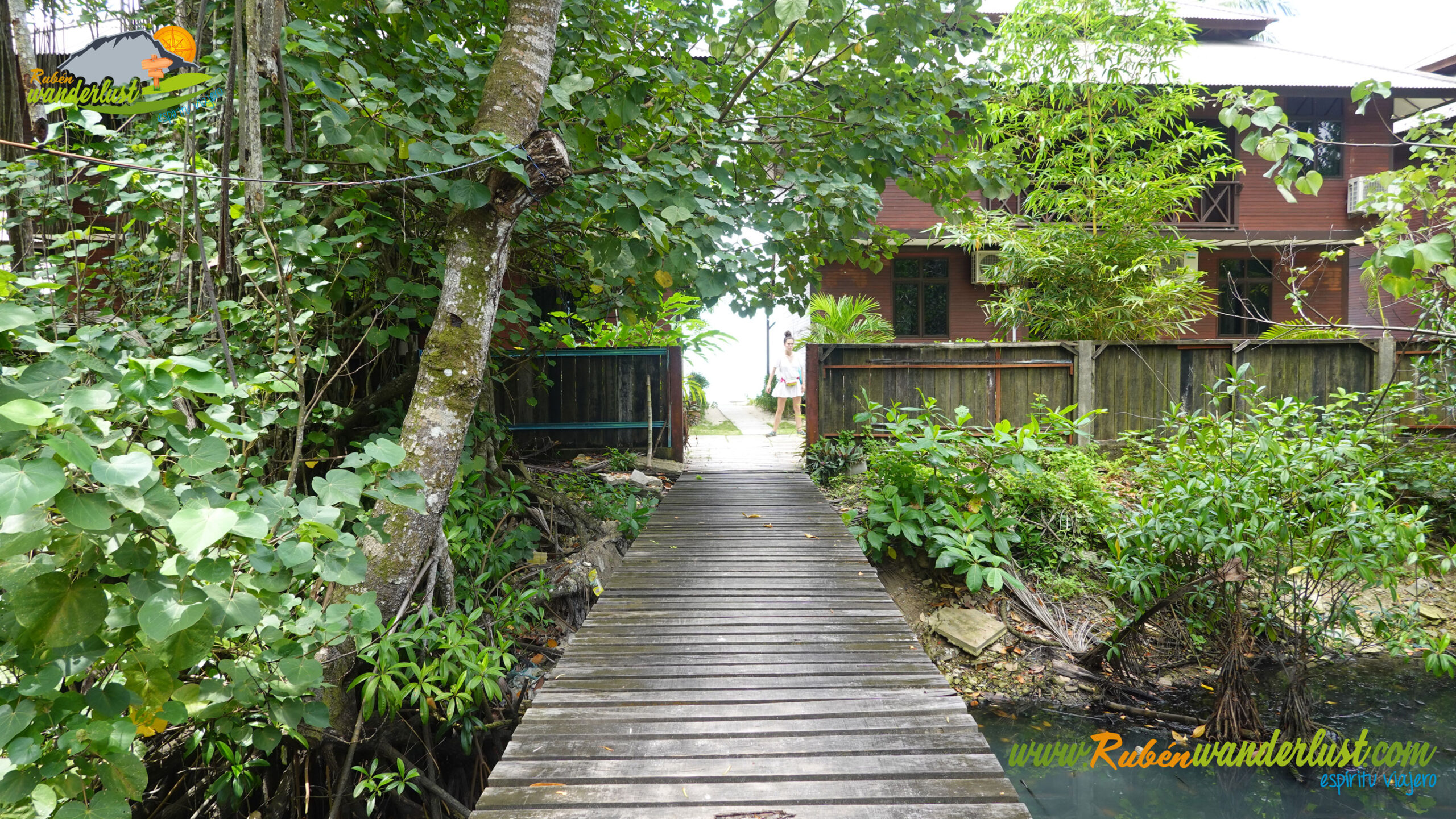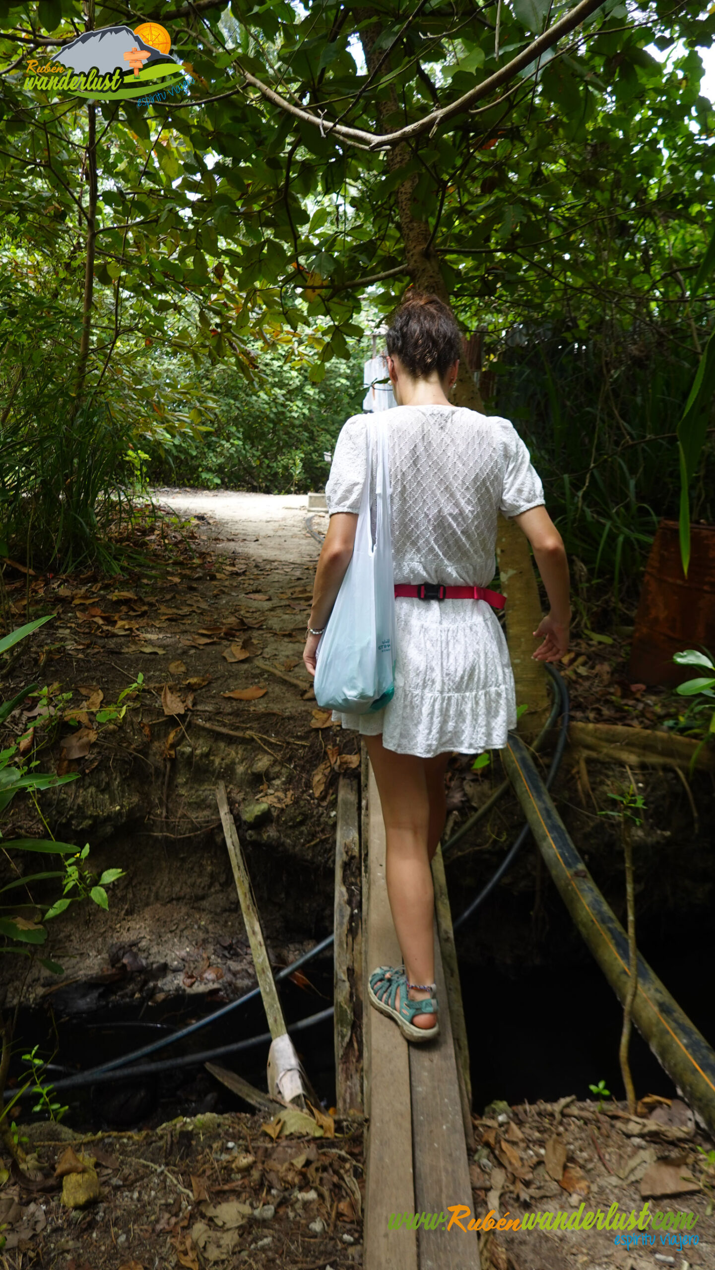 Tras la bajada, llegamos al entorno de Arwana Beach. Vemos algún lagarto más bañándose en una charca, cruzamos un estrecho puente de hormigón y nos dirigimos hacia la playa, cruzando otro puente más! En pocos minutos, nos encontramos en Arwana Beach, otra de las playas de Perhentian Besar, aunque no tan famosa como otras.