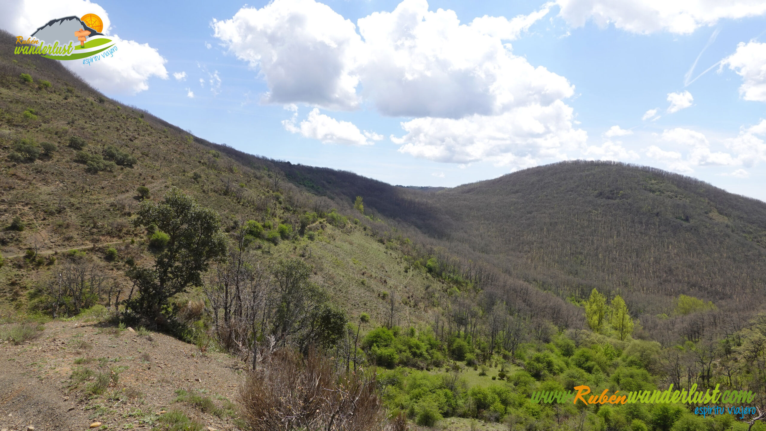 El camino es ancho y no tiene ninguna complicación. Tampoco tiene pérdida y siempre iremos avanzando a lo largo de un bonito robledal. Pasamos por otro collado, donde volvemos a desviarnos hacia la derecha. Unas vistas muy guapas!