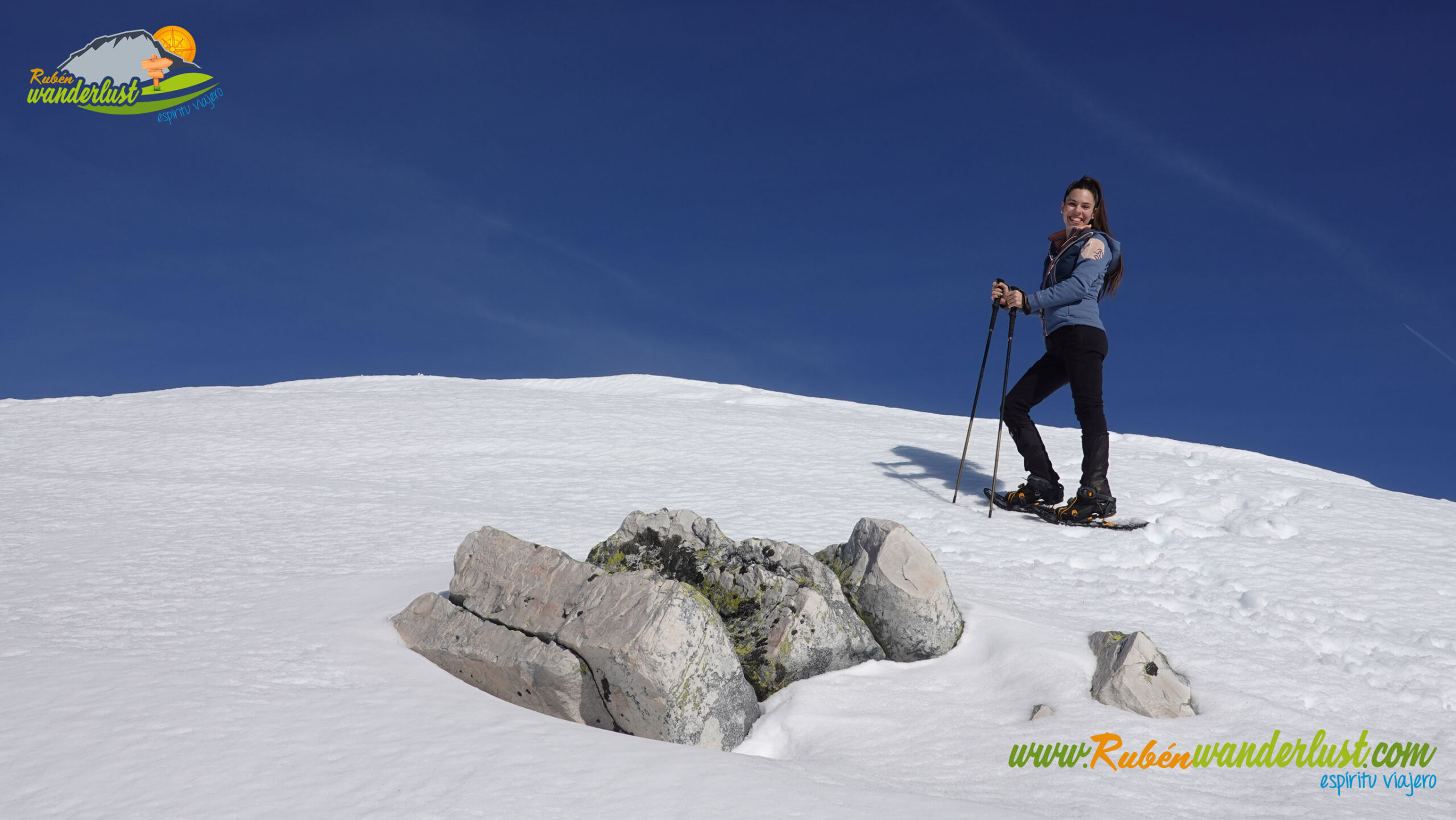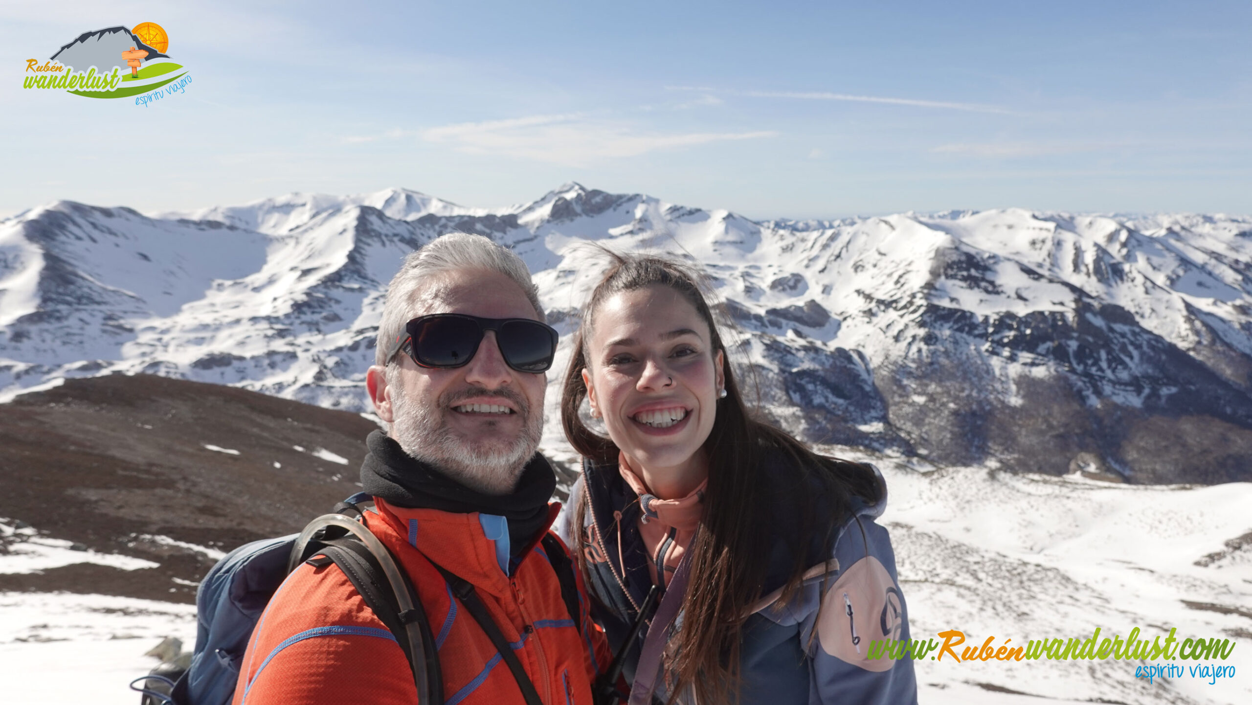 Nos encontramos en la nevada cumbre del Pico Jeje (2.064 m). Las vistas son excepcionales, disfrutando de todo el entorno de cumbres que nos rodean! El tiempo sigue acompañando, así que nos tomamos unos minutos para quedarnos en la cumbre, hacer alguna foto y contemplar las preciosas vistas que tenemos desde aquí! Aparece el Pico Retriñón, otra de las cumbres que más destacan hacia el norte!