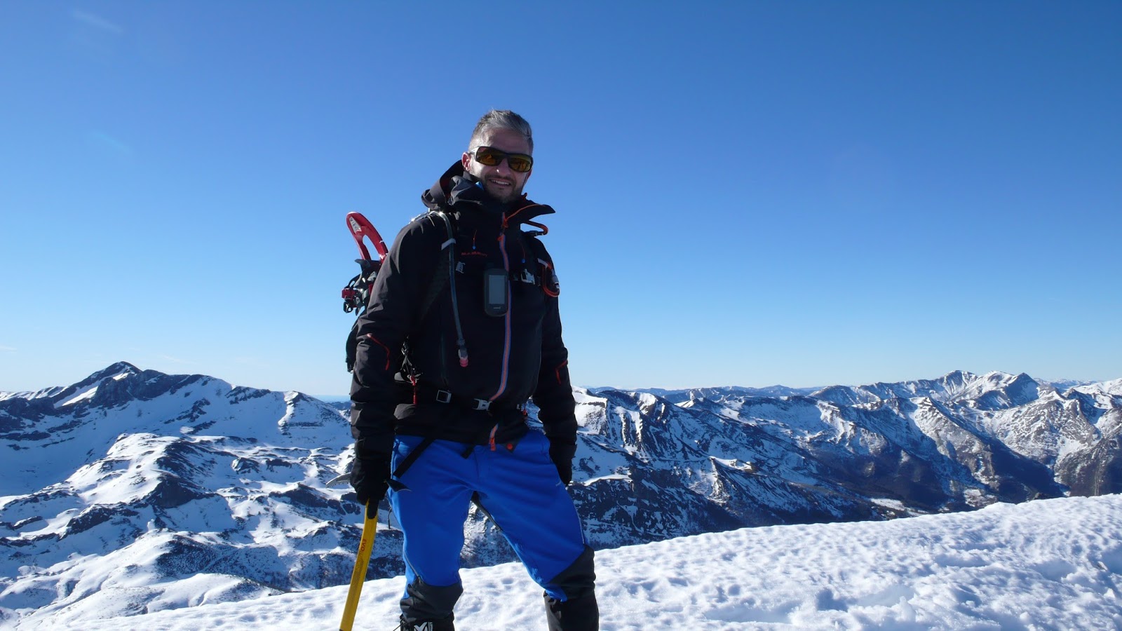 Ya va quedando menos y llegamos al final de la zona rocosa. A partir de aquí, la nieve sería la protagonista, pero nada complicado. Nos calzamos los crampones y agarramos el piolet, por precaución. El último tramo no es demasiado duro y no hay excesiva nieve, por lo que vamos ganando metros muy rápidamente y siempre por la parte más alta de la cómoda cresta.