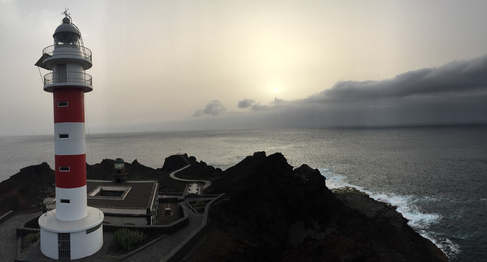 En pocos minutos llegamos al Faro Punta de Teno, que se encuentra cerrado, por lo que sólo lo podemos visitar desde la lejanía o asomados a su puerta de entrada.