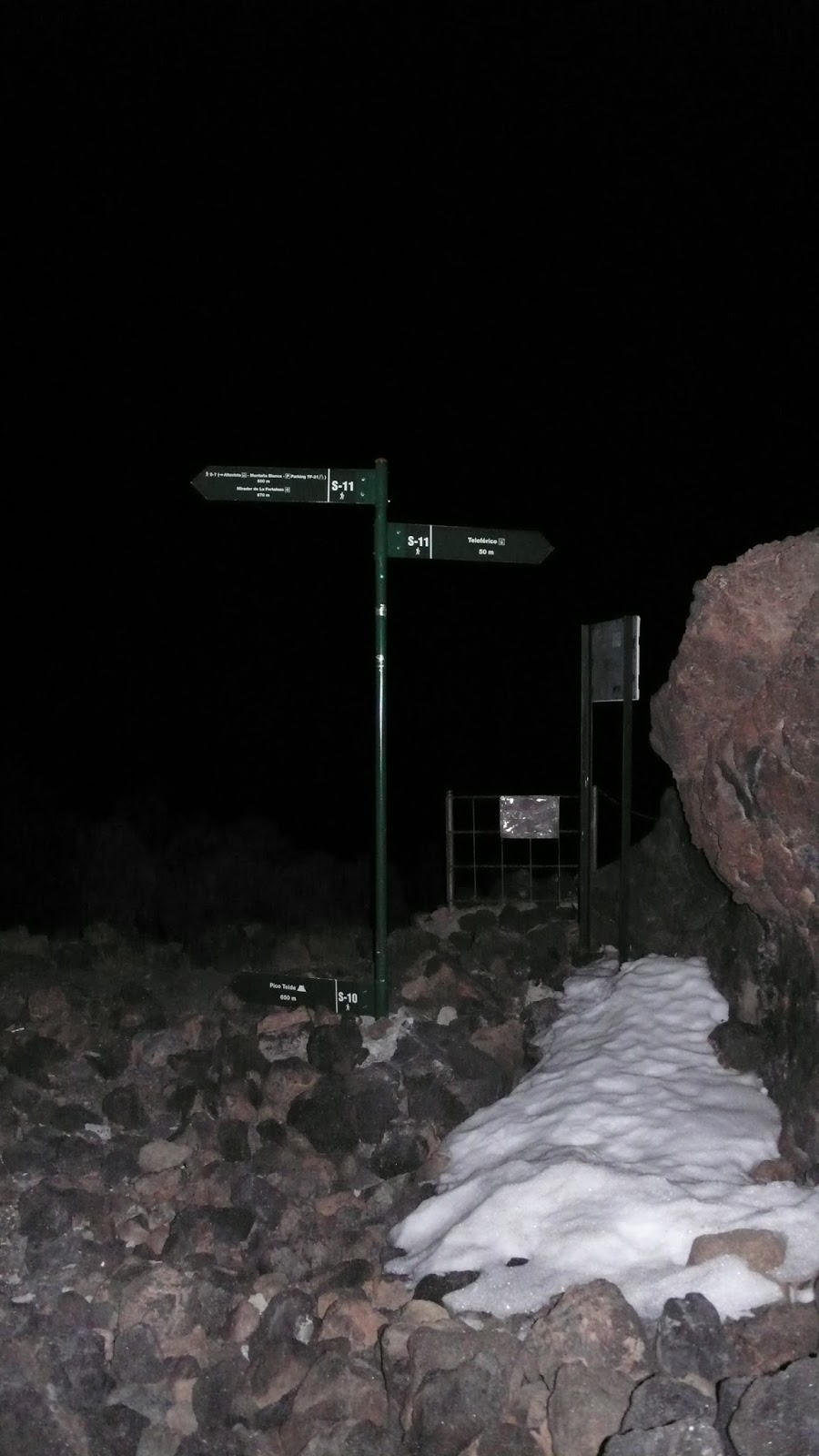 Estamos a más de 3.500 metros de altura y llegamos al desvío que se dirige hacia el Mirador de la Fortaleza, situado a escasos metros. Tras un breve descanso, no dudamos en acercarnos hasta dicho mirador, a pesar de encontrarnos completamente a oscuras.
