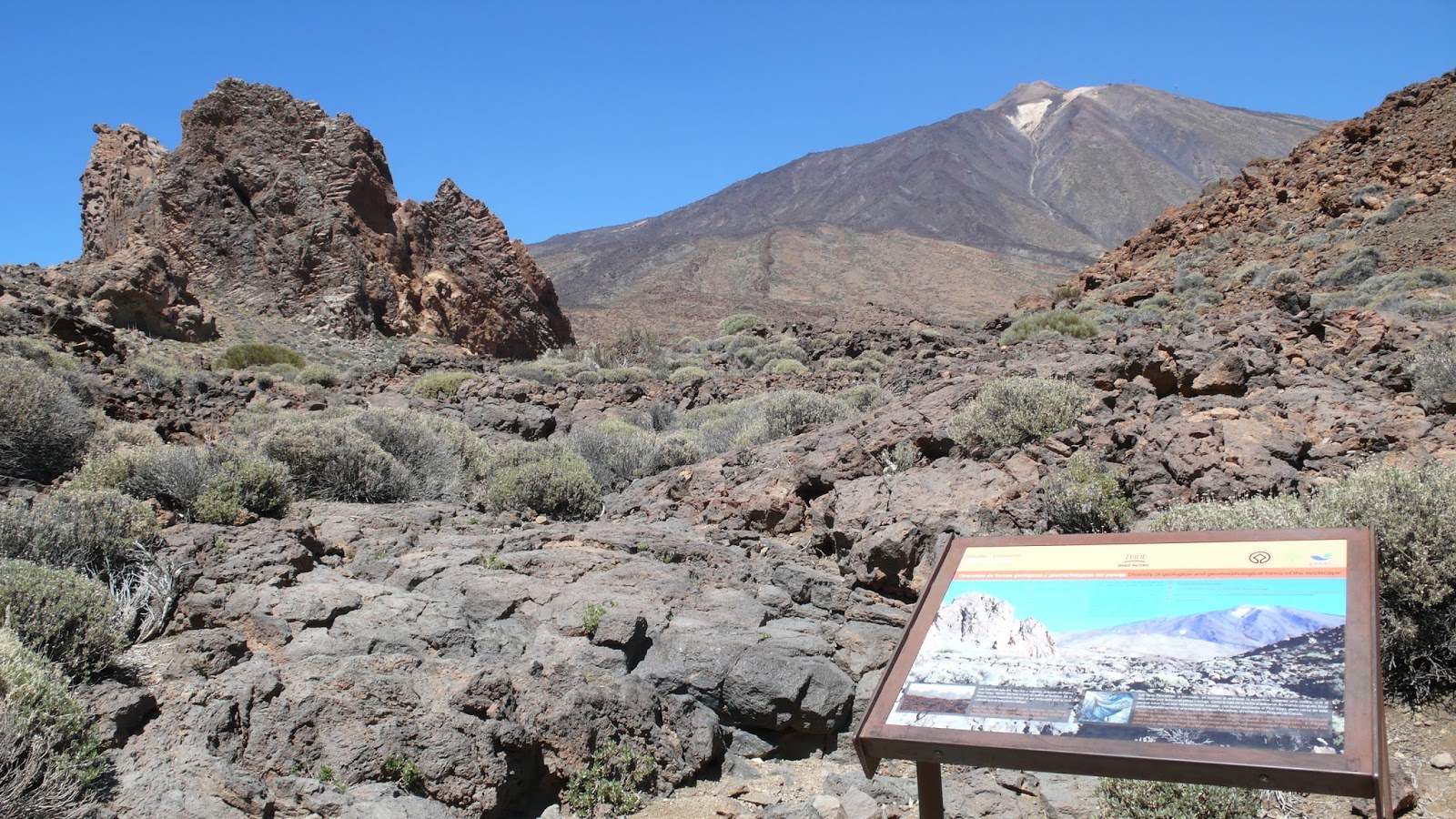 Finalmente, tras completar el tramo de los Roques de García, cruzando la carretera TF-21, llegamos a la altura del parking, ya en el Parador Las Cañadas del Teide. En dicho parking habíamos dejado el coche el día anterior, por lo que damos por finalizada la ruta! Una mirada atrás para presenciar el Pico Teide y un abrazo de alegría por lo conseguido!