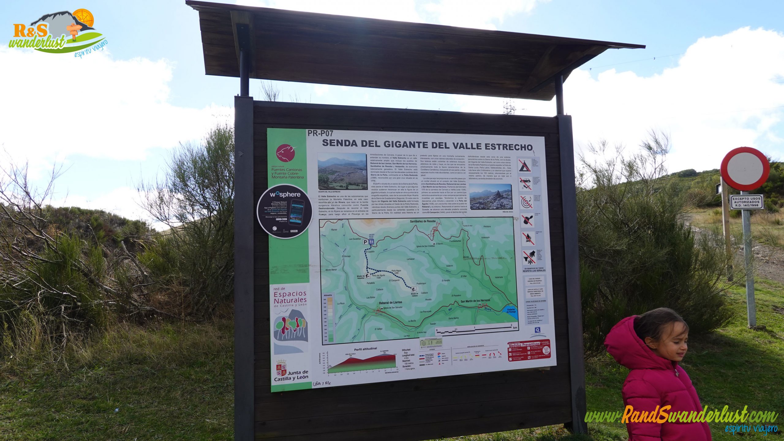 Antes de empezar a caminar, echamos un vistazo al cartel informativo sobre la Senda del Gigante del Valle Estrecho que existe aquí mismo. El día está nublado y ventoso, así que tenemos que abrigarnos bien, pues es una ruta que no ofrece cobijo!