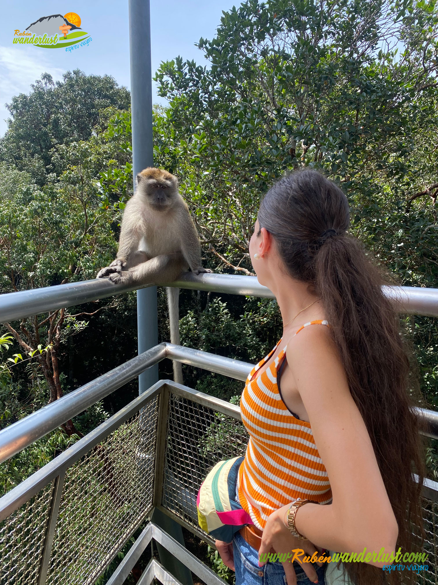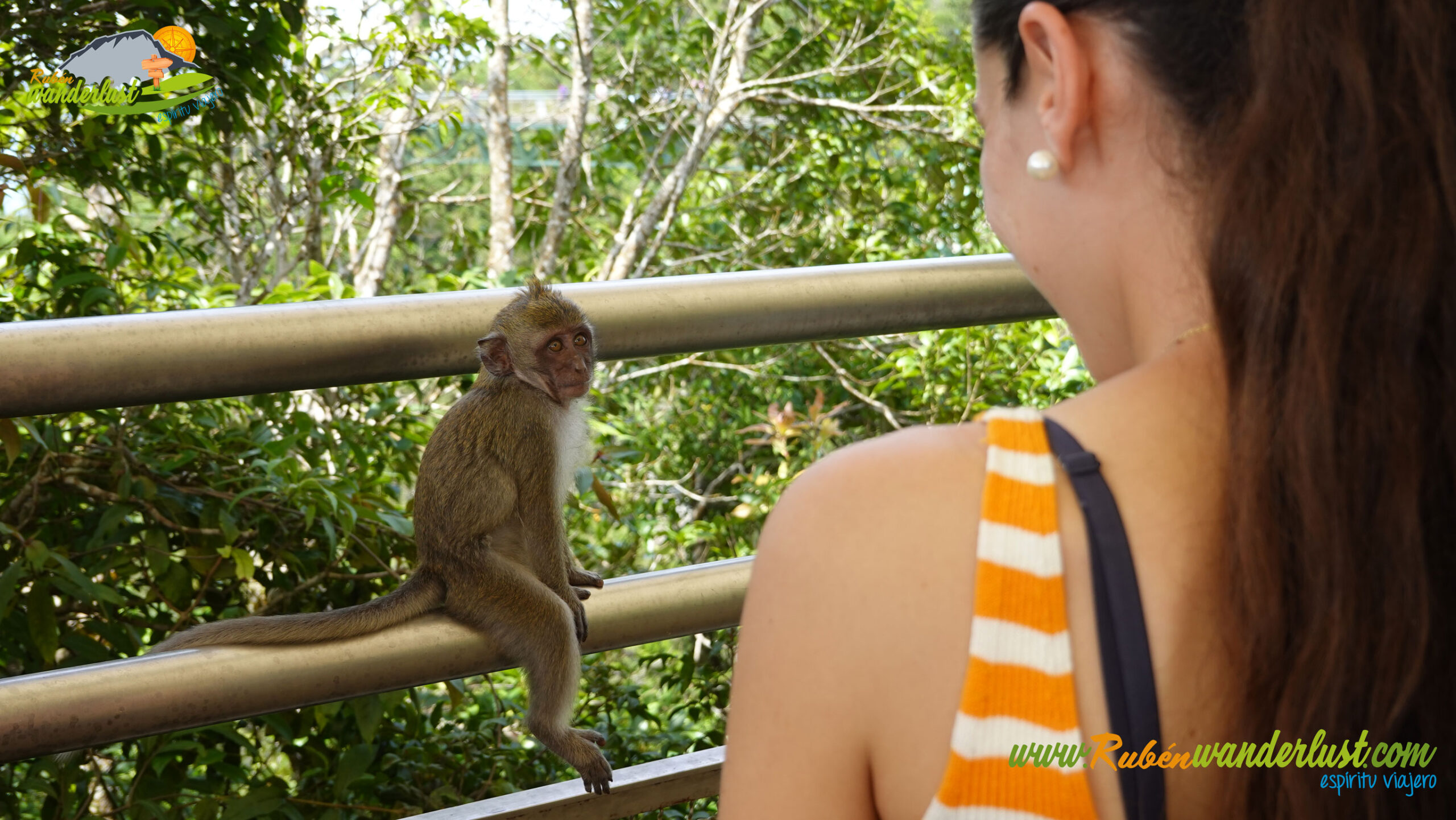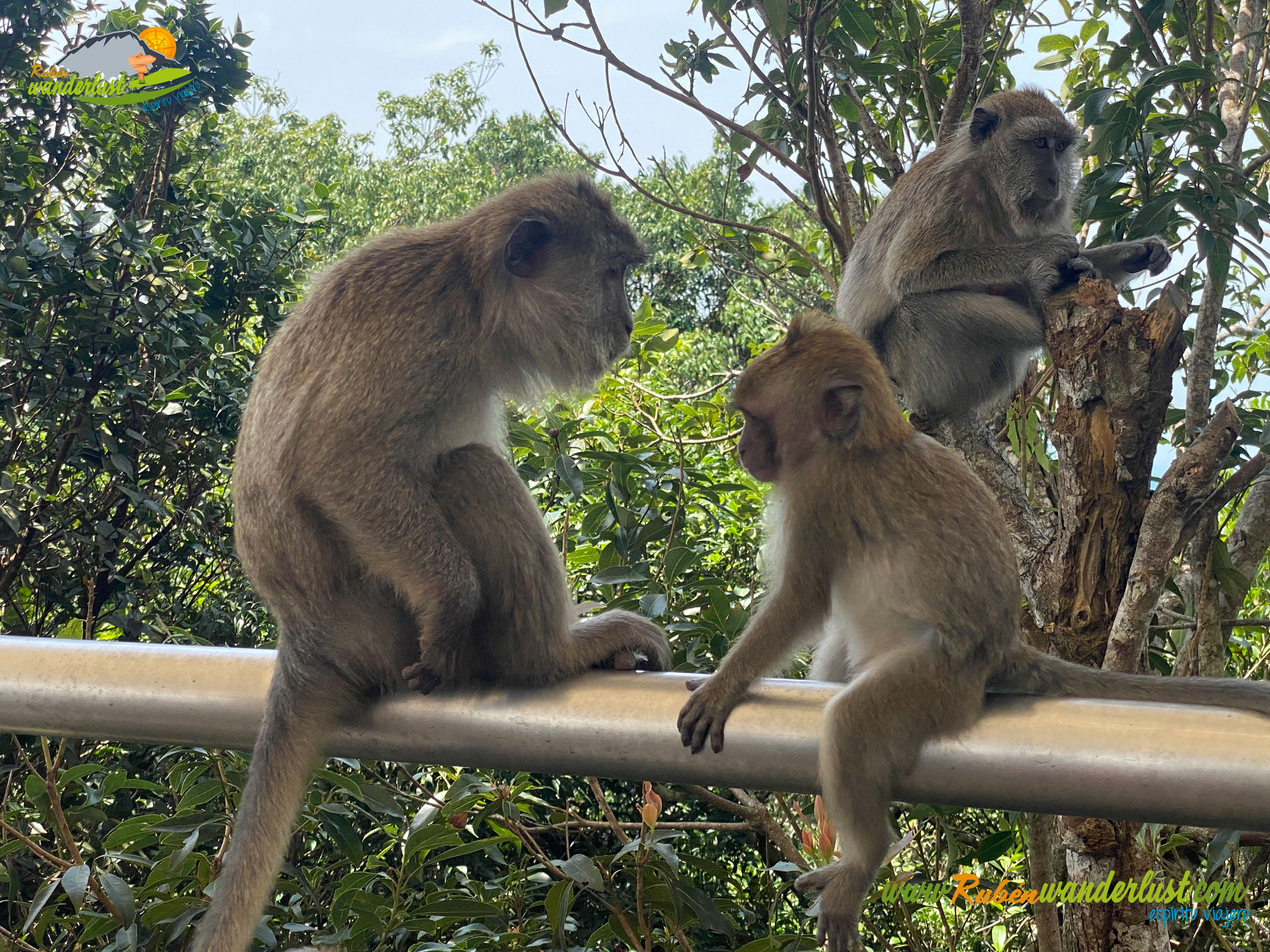 Finalizado el Sky Bridge, llegamos al final del mismo, donde nos sorprende un bonito mirador y un buen número de monos! Varias familias de primates se acercan curiosos, con el fin de lograr algún botín en forma de comida o bebida! Un rato muy entretenido y divertido!