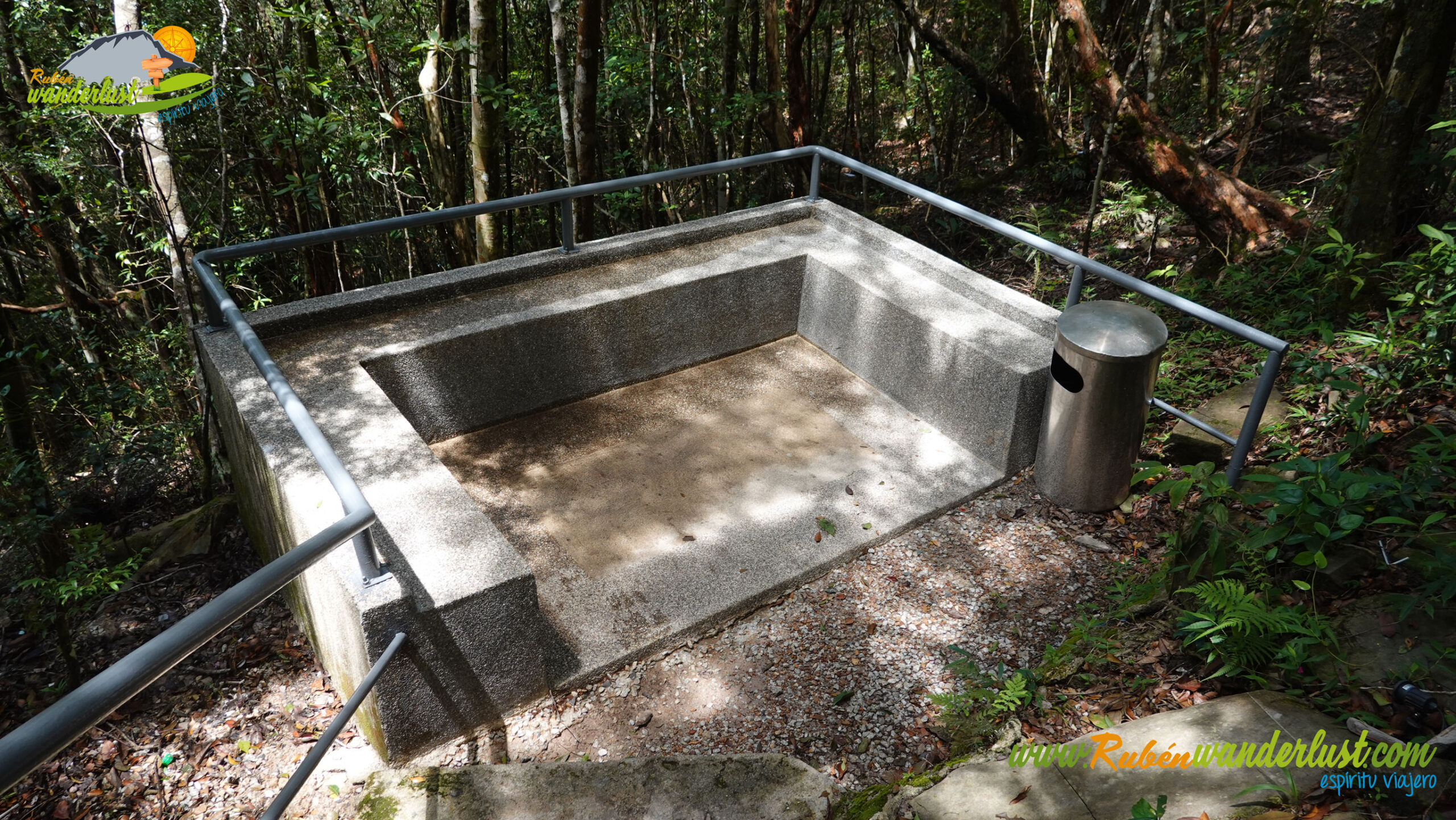 Comenzamos a caminar dejando atrás la estación intermedia de Sky Cab Langkawi, teleférico que nos asciende a unos 650 metros de altitud, y tomando un agradable sendero entre vegetación. El bonito paseo, denominado Nature Walk, nos acercará al puente más famoso de Malasia, el Sky Bridge! Vemos un pequeño área de descanso con buenas vistas del valle.