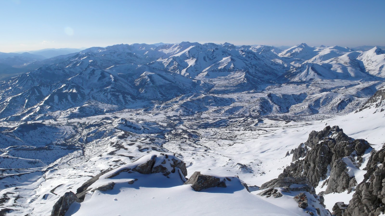 Tras los últimos metros, llegamos a la cima de Peña Ubiña Pequeña (2.193 m.), otra de las montañas míticas del macizo y que guardaré en la retina para siempre! Las vistas son increíbles. Peña Ubiña Pequeña sólo es pequeña cuando se observa desde la cima de su hermana mayor, pero de pequeña no tiene nada! El bonito día que estamos teniendo nos permite divisar toda la Cordillera Cantábrica, desde Ancares hasta Picos de Europa. Ocupan nuestra atención las cercanas Peña Cerreos y Peña Ubiña, pero son visibles muchas de las montañas del Macizo de Ubiña y las grandes cumbres de la Cordillera Cantábrica. Por supuesto, los majestuosos Picos de Europa también ocupan un lugar privilegiado en las hermosas vistas que tenemos!