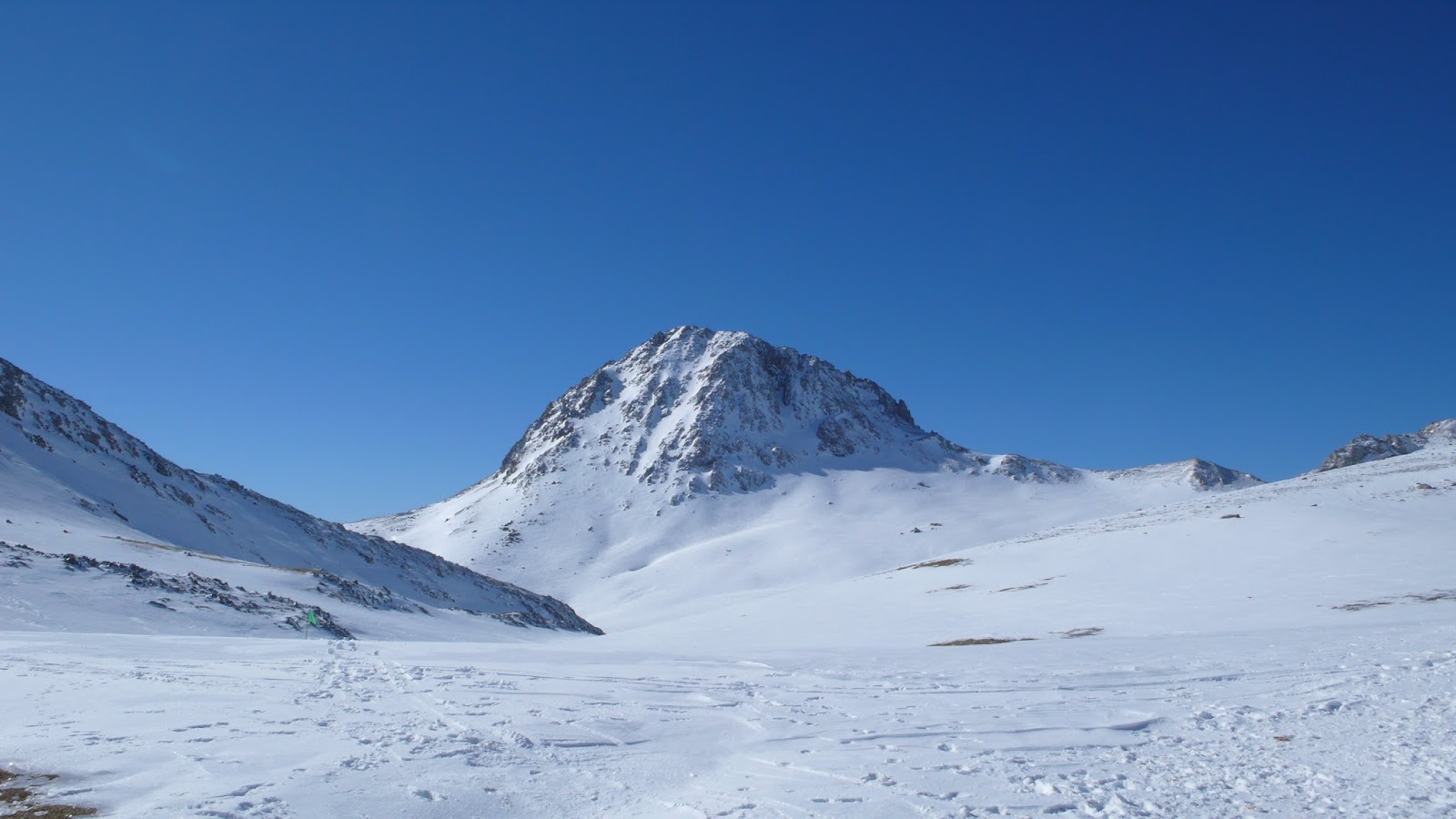 La primera parte del descenso, diferente, pero con la misma inclinación que el ascenso, más o menos, lo completaremos de cara a la montaña. Vamos bajando, a modo de escalera, sin prisa y muy seguros de cada paso. El descenso es cómodo y la nieve nos brinda unas condiciones bastante óptimas. Pronto enlazamos con la huella de subida, y de ahí, hasta la base.
