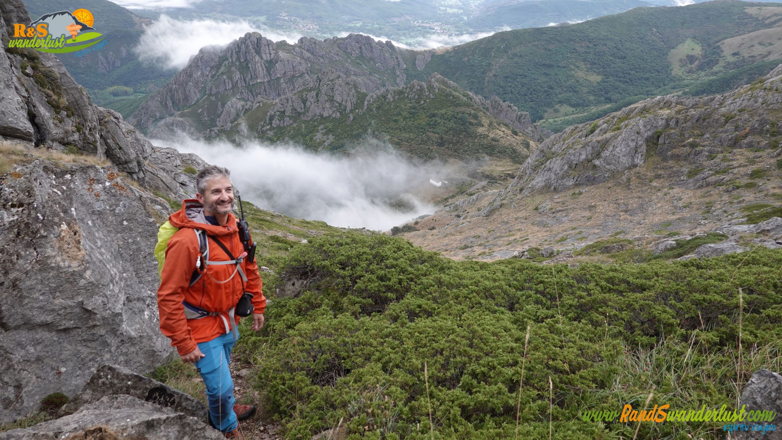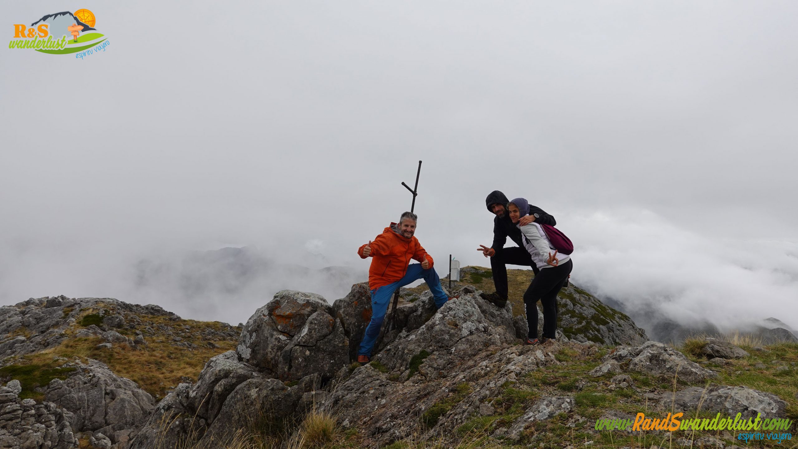 Afrontamos la última parte de la ascensión entre risas y anécdotas, siempre por un sendero muy bien marcado y sobre un terreno cantábrico. La lluvia cesa, pero aparece el viento, algo más desagradable conforme nos vamos acercando a la cumbre. Estamos en los últimos metros, donde buscamos la mejor manera de llegar a la cima! Aparecen las nubes!