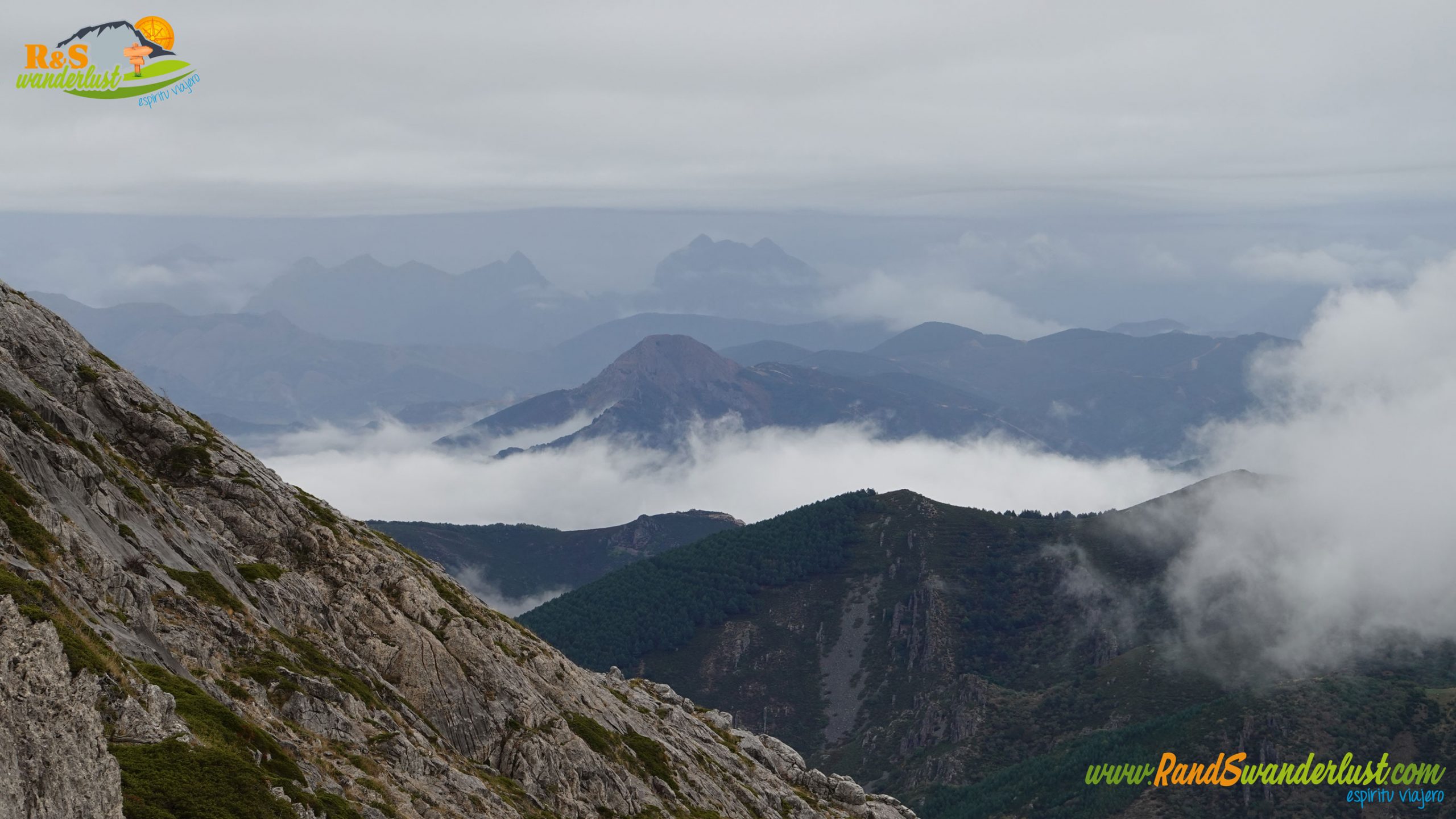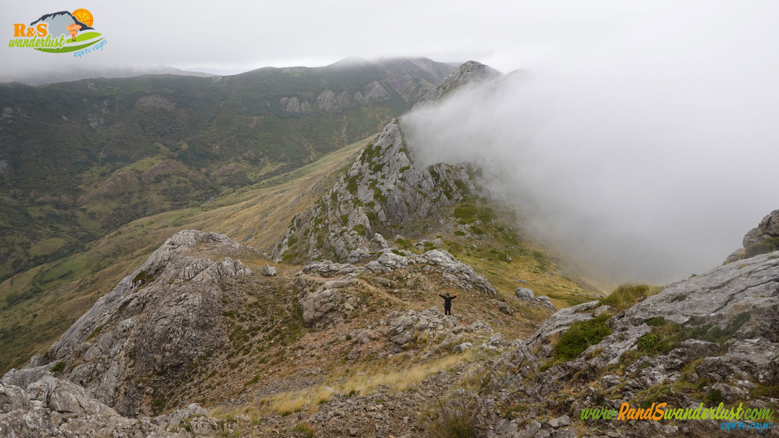 Completado el exigente ascenso, llegamos a Peña Valdorria (1.926 m). No puede ser! Las nubes corretean de un lado para otro y nos privan de unas vistas que prometen ser de escándalo. Apenas vemos las montañas más cercanas, como Peña Morquera, Peña Galicia, el Pico Bucioso o el Pico Prado Llano. Bonita imagen hacia el valle del Río Curueño y hacia los pueblos cercanos! También divisamos el precioso paraje que rodea el Bosque de las Hadas, una ruta que completamos hace poco y que es espectacular! Breve rato en la cumbre, pues el viento está muy presente, alguna foto y para abajo!