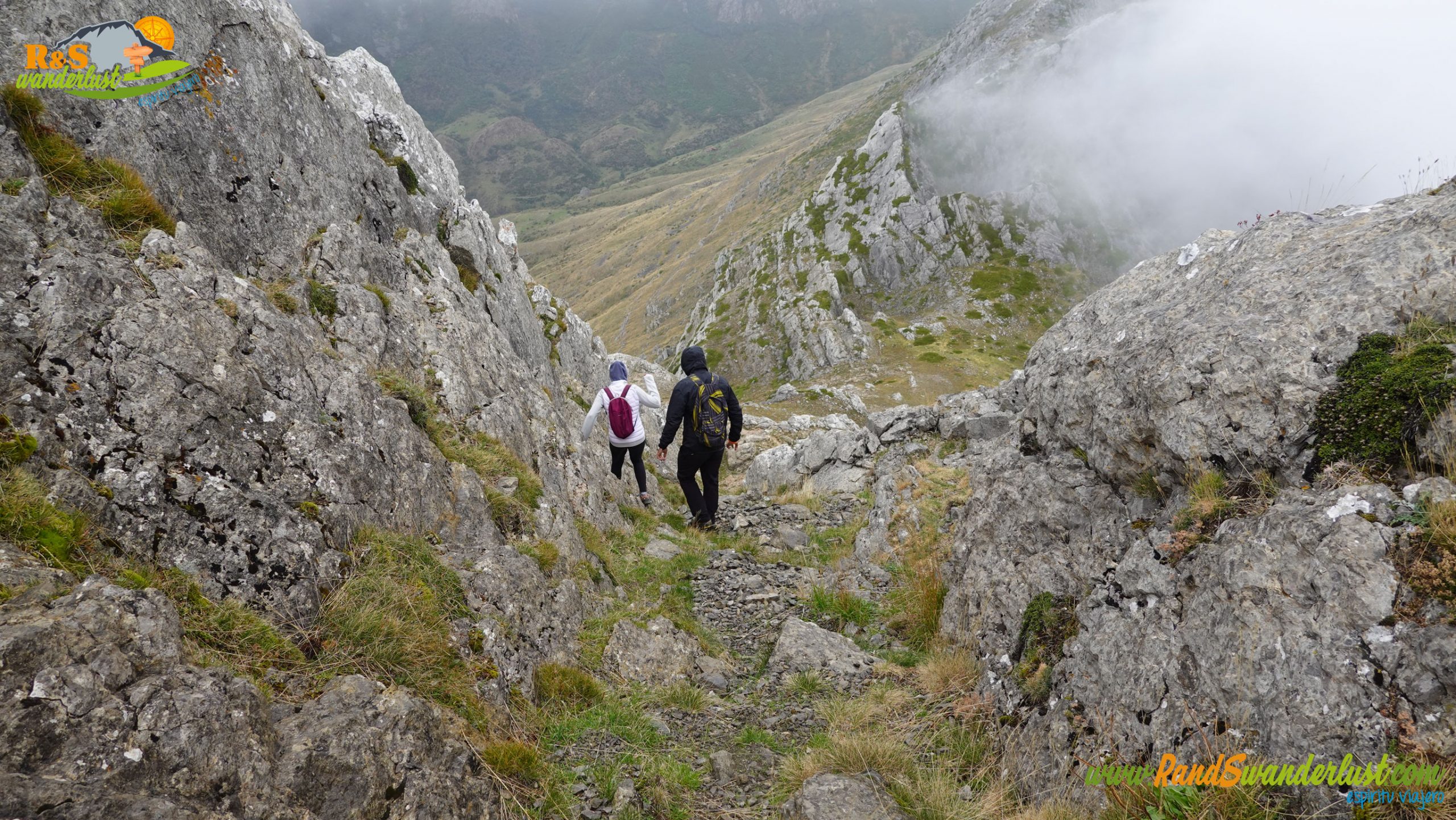 Continuamos descendiendo hacia el valle, siempre por un sendero perfectamente marcado y señalizado. El camino no ofrece ninguna dificultad técnica, tan sólo algún punto algo más inclinado en el que podemos resbalar, aunque nada importante. Conforme vamos perdiendo altura, el viento cesa, haciendo más agradable la bajada.