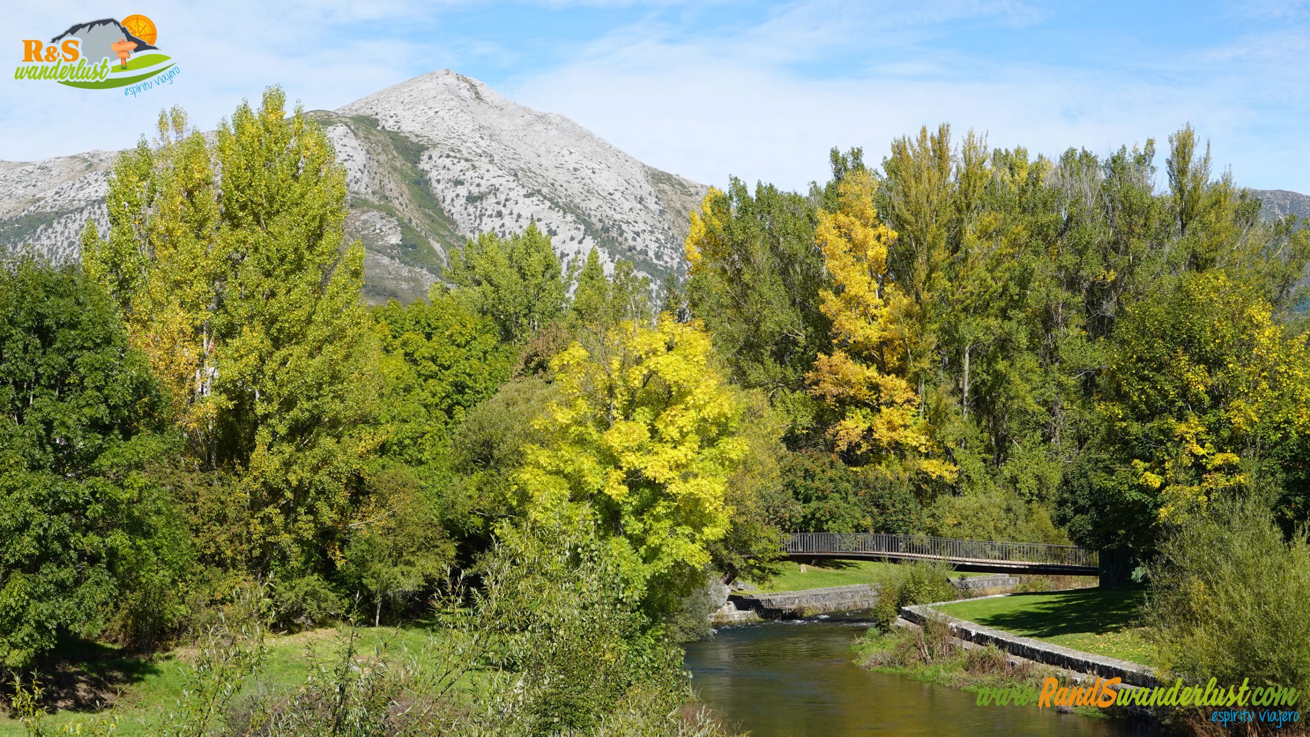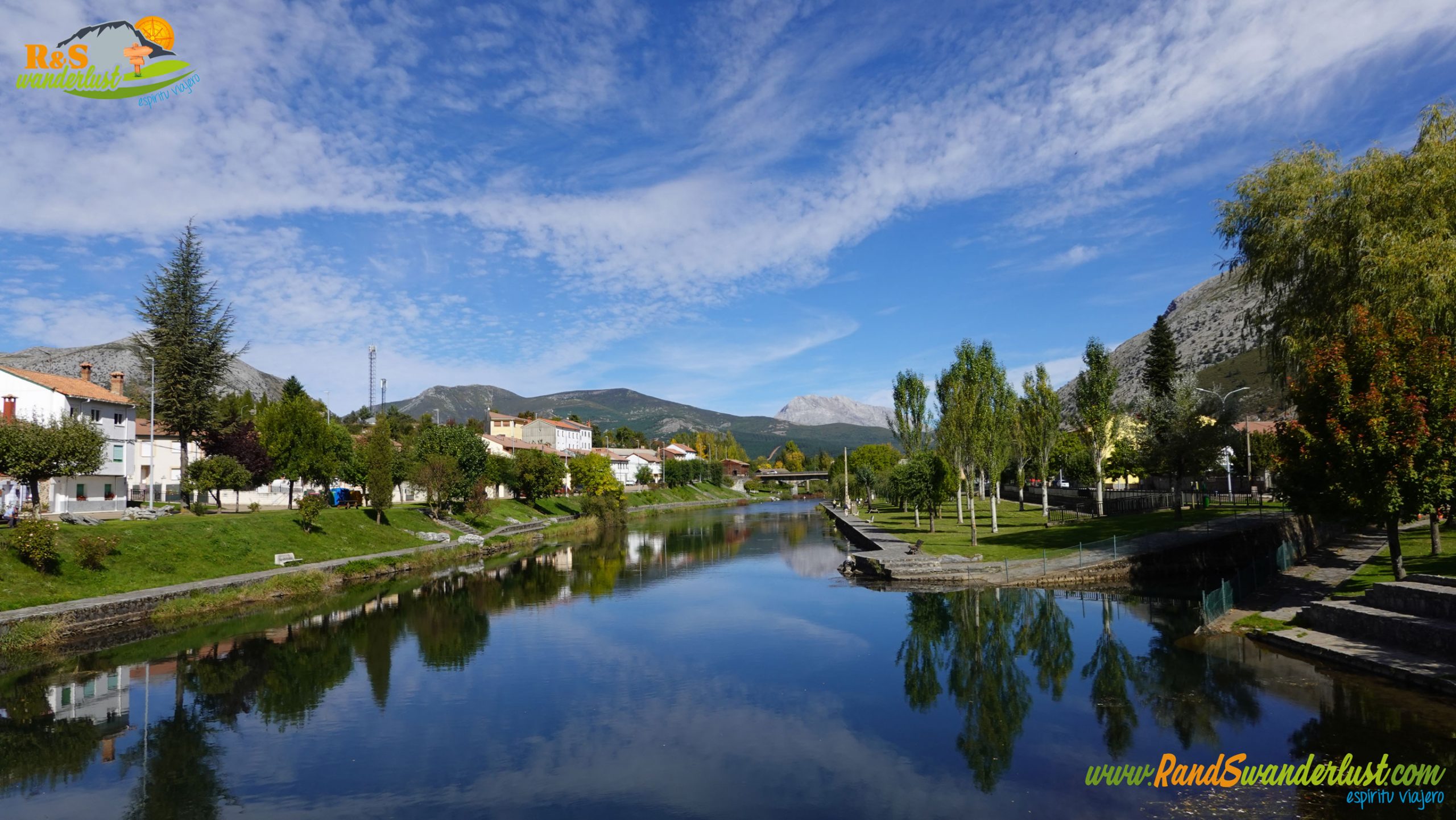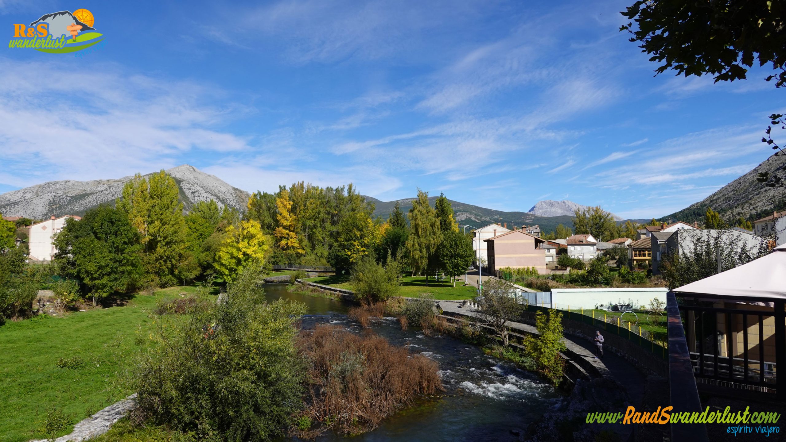 Continuamos el trazado por una de las calles principales de Velilla del Río Carrión, regresando hasta llegar de nuevo a la altura del Río Carrión, donde encontraremos otro photocall más. Tremendas vistas hacia Peña Lampa y el Pico Espigüete, mole caliza que emerge al fondo. Unas vistas preciosas!