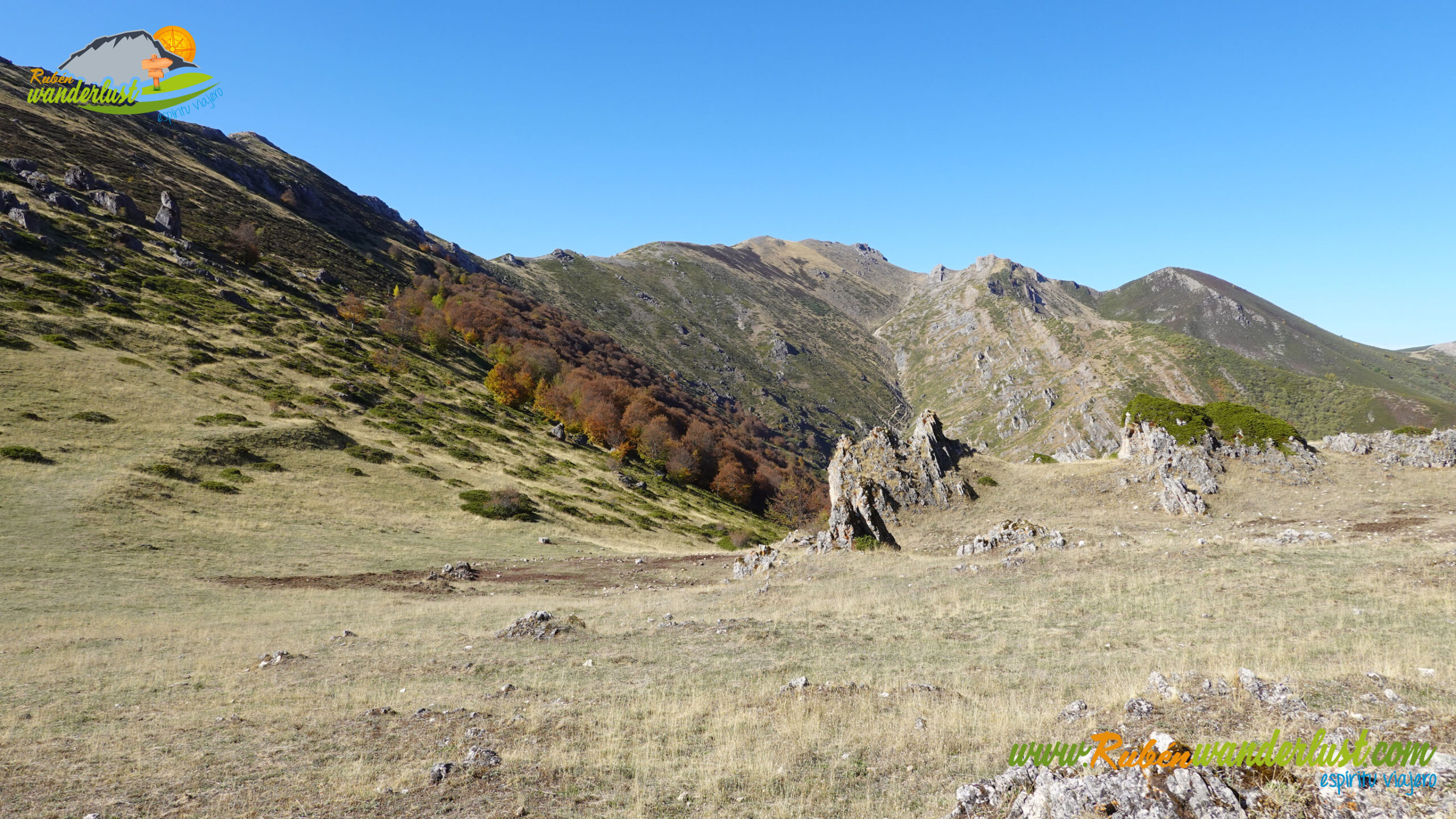 Descendemos por la loma que se mantiene por la parte más alta de Los Panazos, rumbo al collado que separa el Valle Lagarejo y la Mina La Providencia. Volvemos a disfrutar de las vistas, ahora en todo momento! Es un placer caminar por aquí!