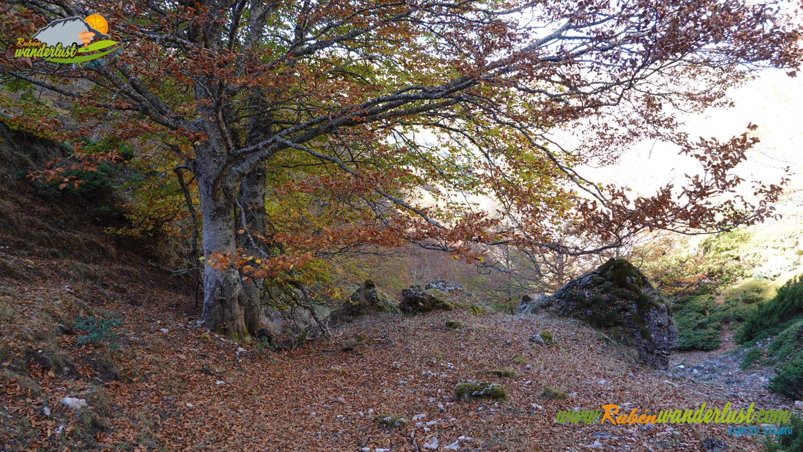 Turno para el descenso hacia la Mina La Providencia, y si el Valle Lagarejo nos brindó buenas sensaciones, esta bajada no será distinta! Volvemos a caminar entre hayas, bajando siempre por la parte más profunda del valle. Una zona muy solitaria y evidente de seguir. Eso sí, por momentos se inclina!